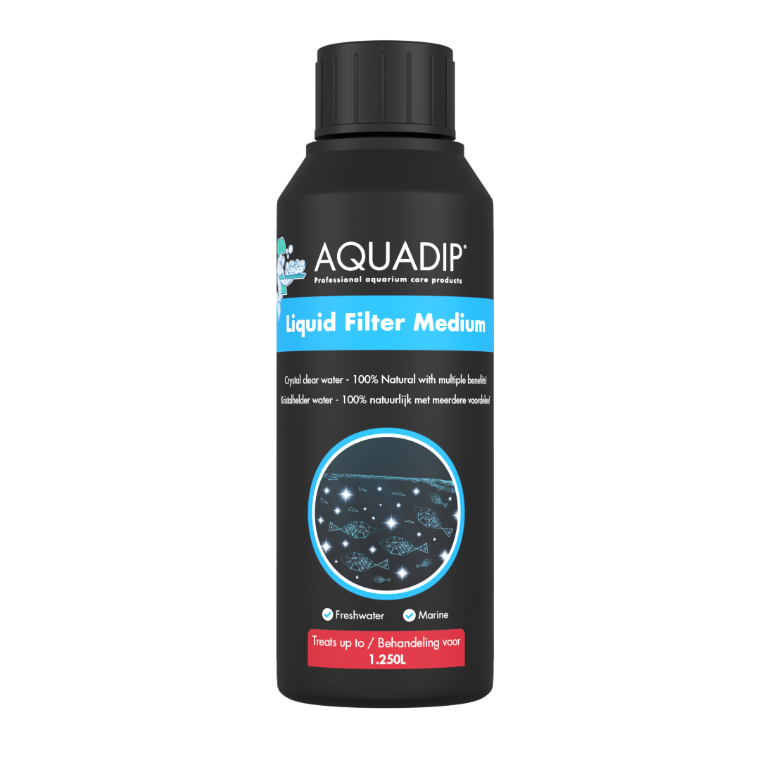 AQUADIP Liquid Filter Medium is an all-round water conditioning product. It makes your aquarium water crystal clear, removes copper, zinc, aluminium and other heavy metals, stimulates fish health and reduces and prevents stress, removes smells from the aquarium and it promotes breeding in a biological way because of natural ingredients and microorganisms. Food and waste residues are turned into a natural plant fertiliser.